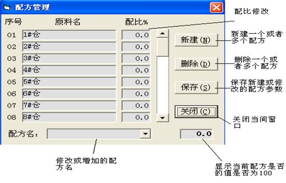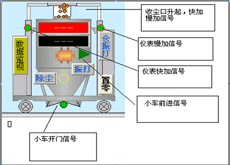 给料电振机、螺运机、混合机、斗提机、除尘器、破碎机等重要设备有启动信号反馈,其中混合机、斗提机、破碎机还有运行是流检测。系统随时监测这些设备的运行状态,当某一设备出现故障停止工作时,系统将报警或停止配料运行。